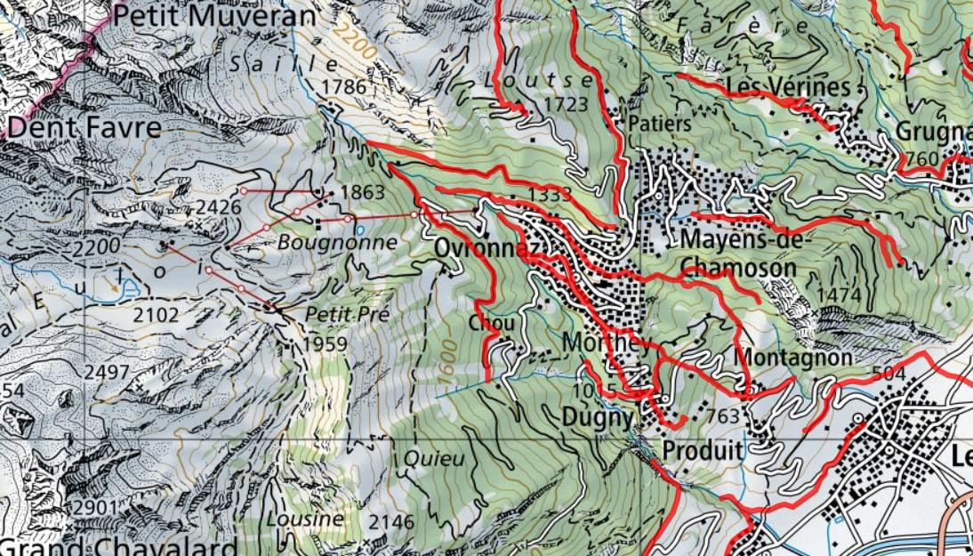 La carte ci-dessous tirée de l’inventaire des bisses de Monsieur Joahann Gerber est reprise du dossier UNESCO.